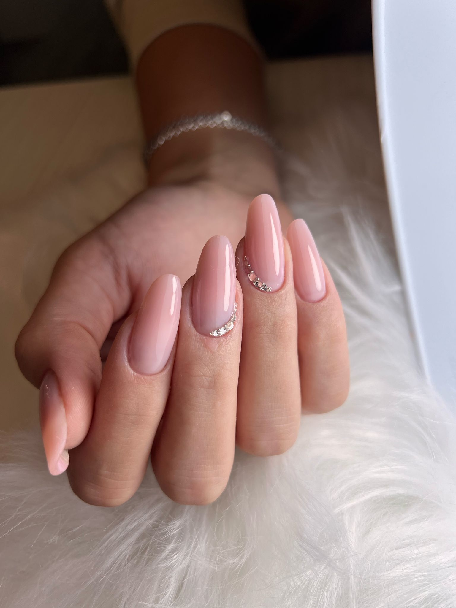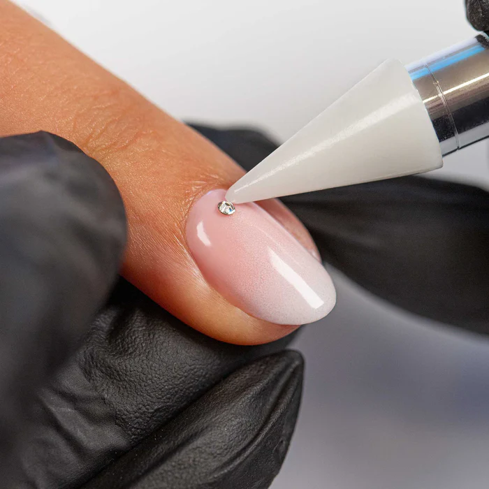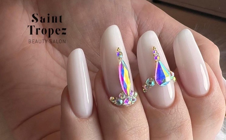 Decorazione delle unghie con cristalli Swarovski per un effetto elegante e scintillante, aggiungendo un tocco di lusso e brillantezza.