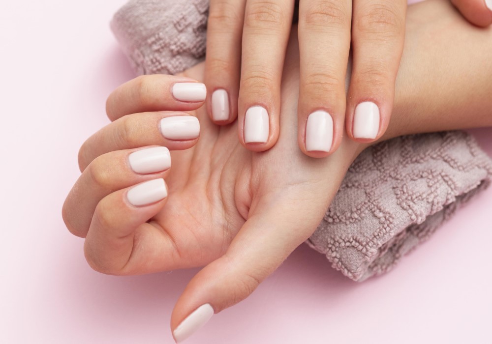 Manicure eseguita senza l'uso di acqua, concentrandosi sulla cura delle unghie e delle cuticole con strumenti specifici per un risultato preciso e duraturo.